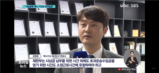 안녕하십니까, 울산민사전문변호사 강앤강 법률사무소의 강영준, 강소영 변호사입니다. 지난 화요일 ubc울산방송뉴스에서는 저희 사무실에서 진행한 '택시 최저임금' 사건이 1심에 이어 항소심에서도 승소한 내용이 보도되었습니다. 기사 내용에서도 확인할 수 있는 것처럼 전국에서 연이어 진행되고 있는 택시기사들의 최저...