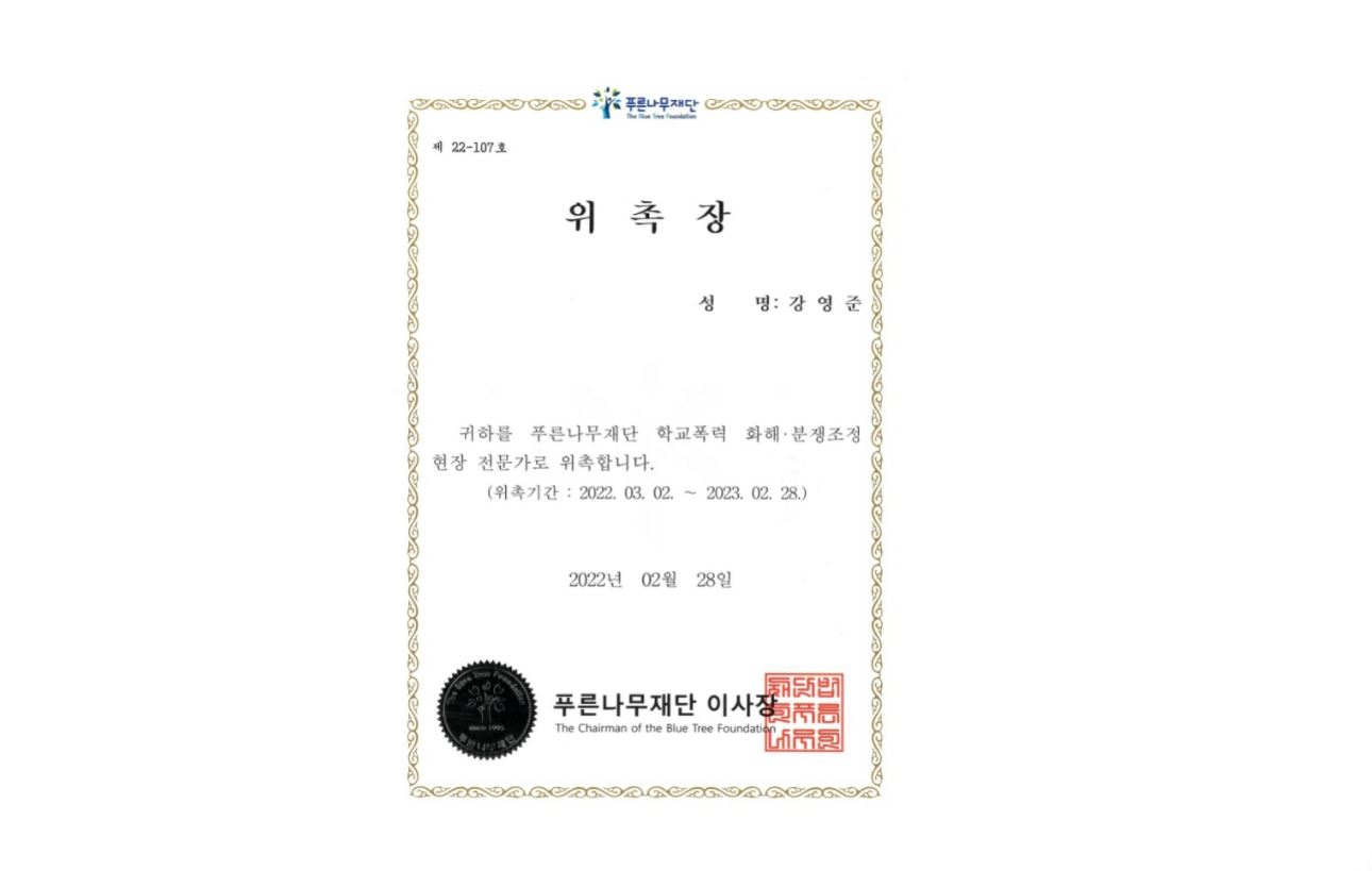 강영준 변호사 (재)푸른나무 청예단 학교폭력 화해 분쟁조정 자문위원 ...